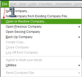 - Now, open the QuickBooks File menu and select Open or Restore Company to open the copied file from the new location.